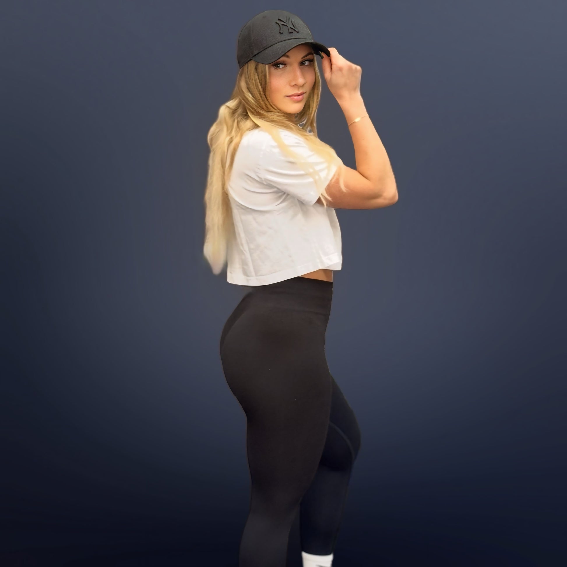 Unsere Athletin ist 165cm groß, wiegt 58kg und trägt Größe S/M.
